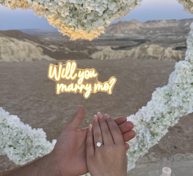 אנחנו מתחייבים לעיצוב המושלם וליצירת חוויה בלתי נשכחת – בכל מקום בארץ, באהבה ובמסירות. בין אם תרצו הצעת נישואין על יכטה מפוארת, עם נוף השקיעה לים, בסוויטה יוקרתית או בטבע הפתוח – אנחנו נלווה אתכם בדרך להצעה בלתי נשכחת.